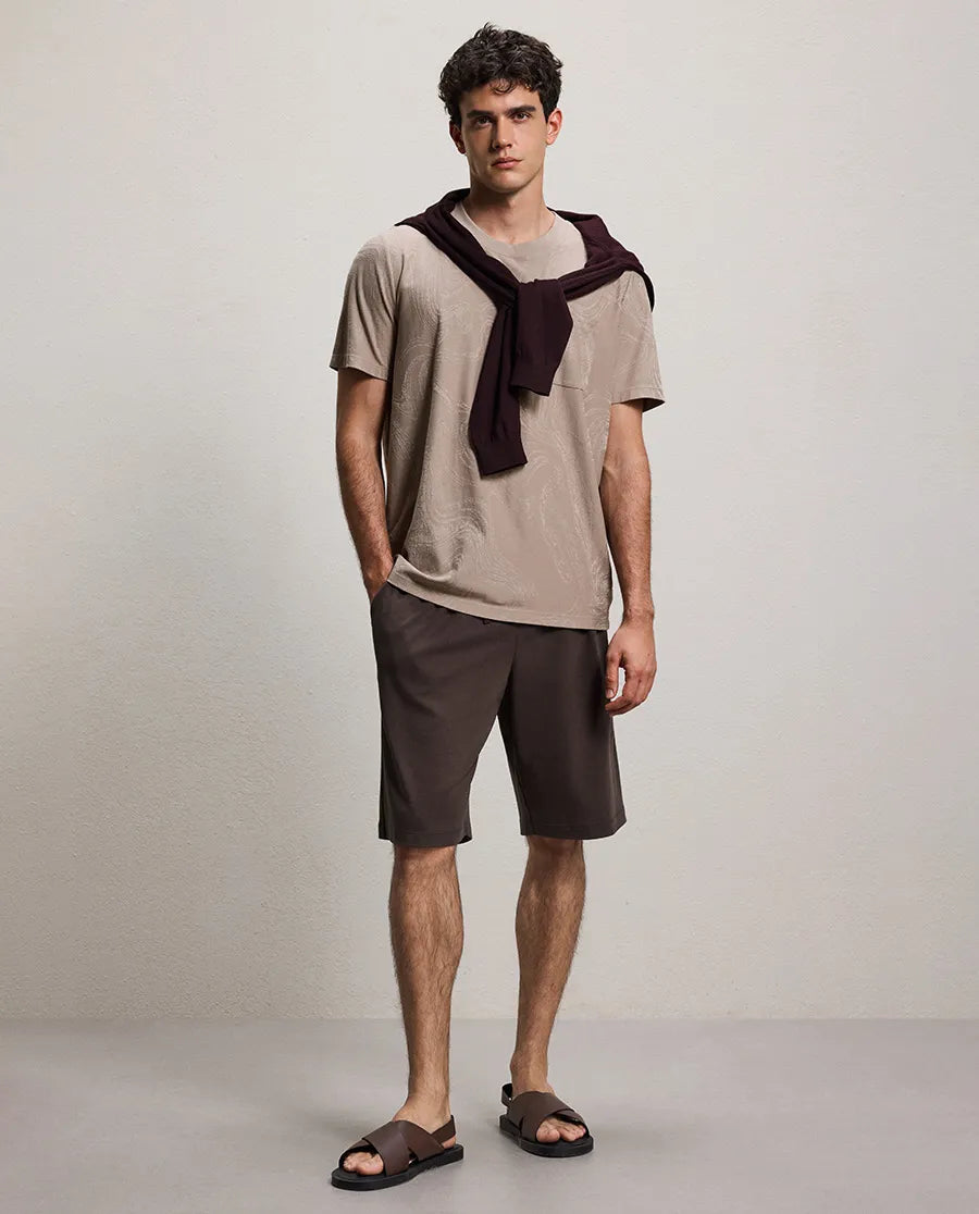 Crafted from a premium blend of cotton and modal, this jacquard pajama set delivers comfort across any occasion. The top features intricate jacquard weaving that adds sophisticated texture and visual interest. Soft, breathable, and versatile—perfect for lounging or sleeping in style.