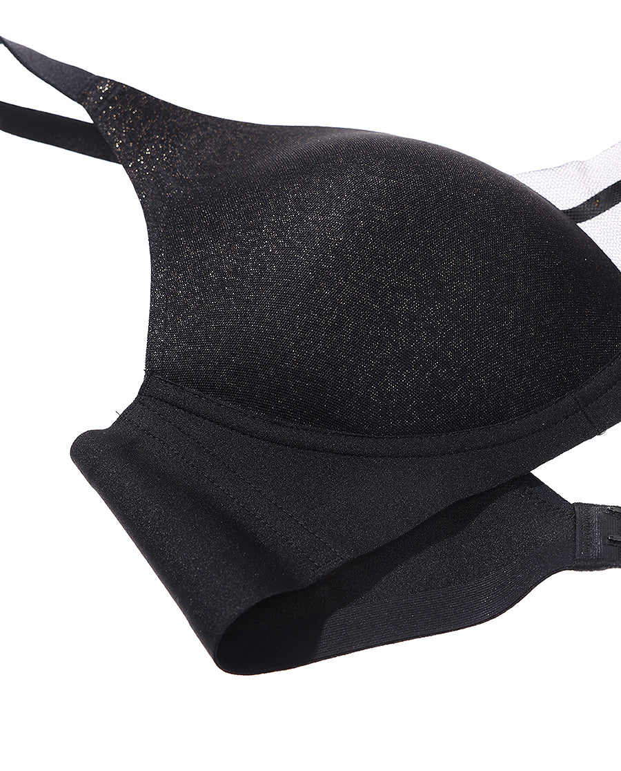Seamlessly bonded with precision dot-adhesive technology, this push-up bra delivers comfort without underwires. The iridescent finish creates a mesmerizing play of light and color with every movement. Lightweight and supportive, it's designed for all-day wear that feels like a second skin. Experience the perfect balance of elegance and ease.