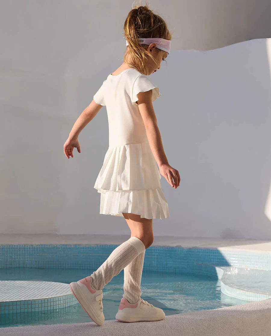 Stay cool and stylish with Aimer Kids Cool Feeling T-Shirt for Girls. Its breathable material and back pleat design provide a cool and comfortable fit. Perfect for any fashion-forward kid!