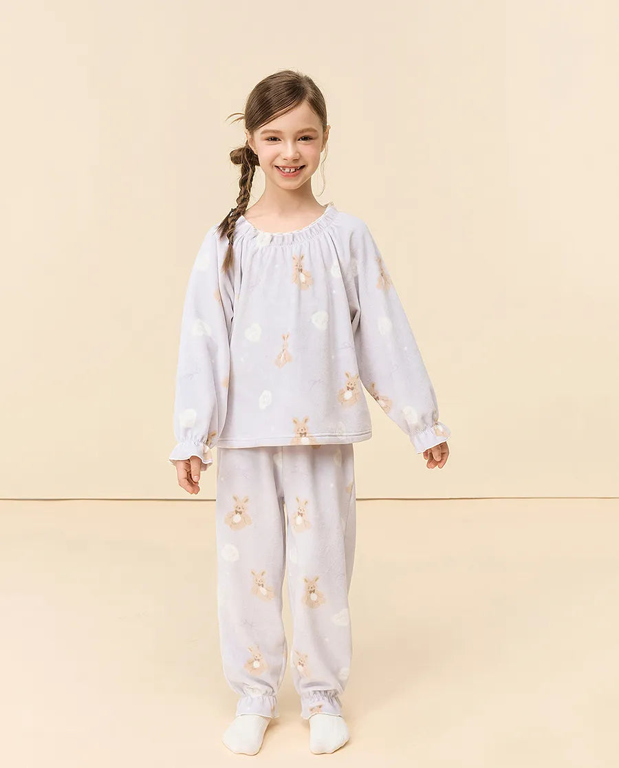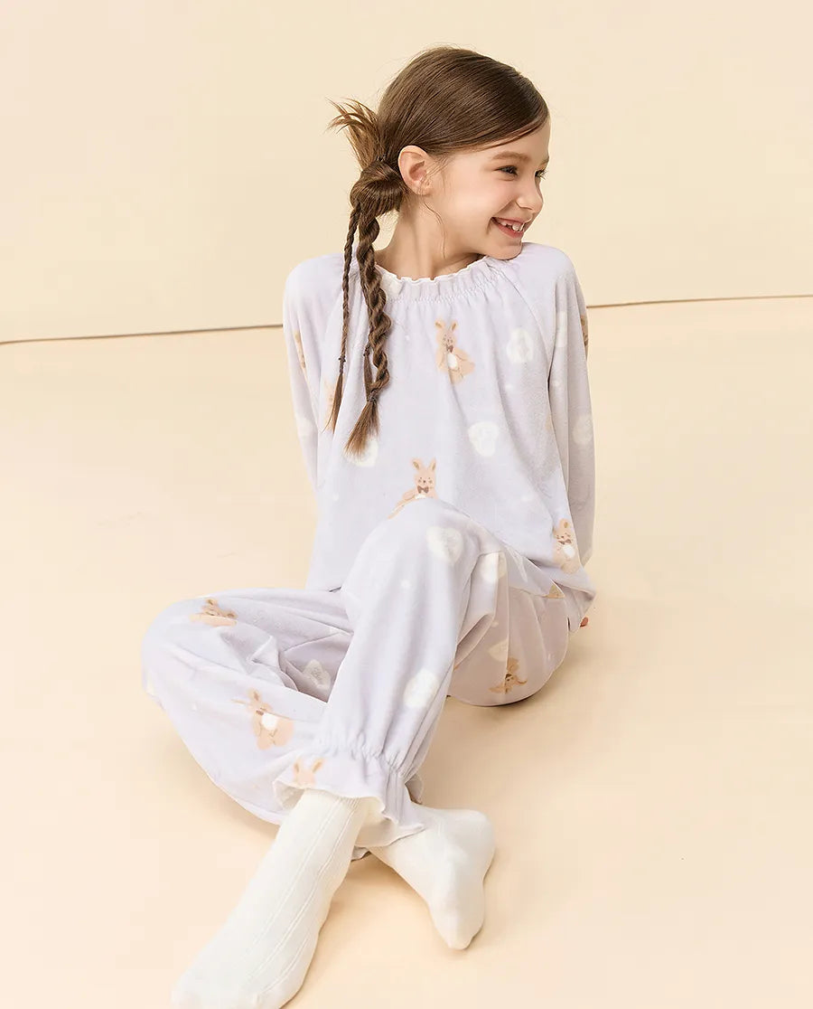 Aimer Kids Girls Velvet Bunny Print Lounge Set