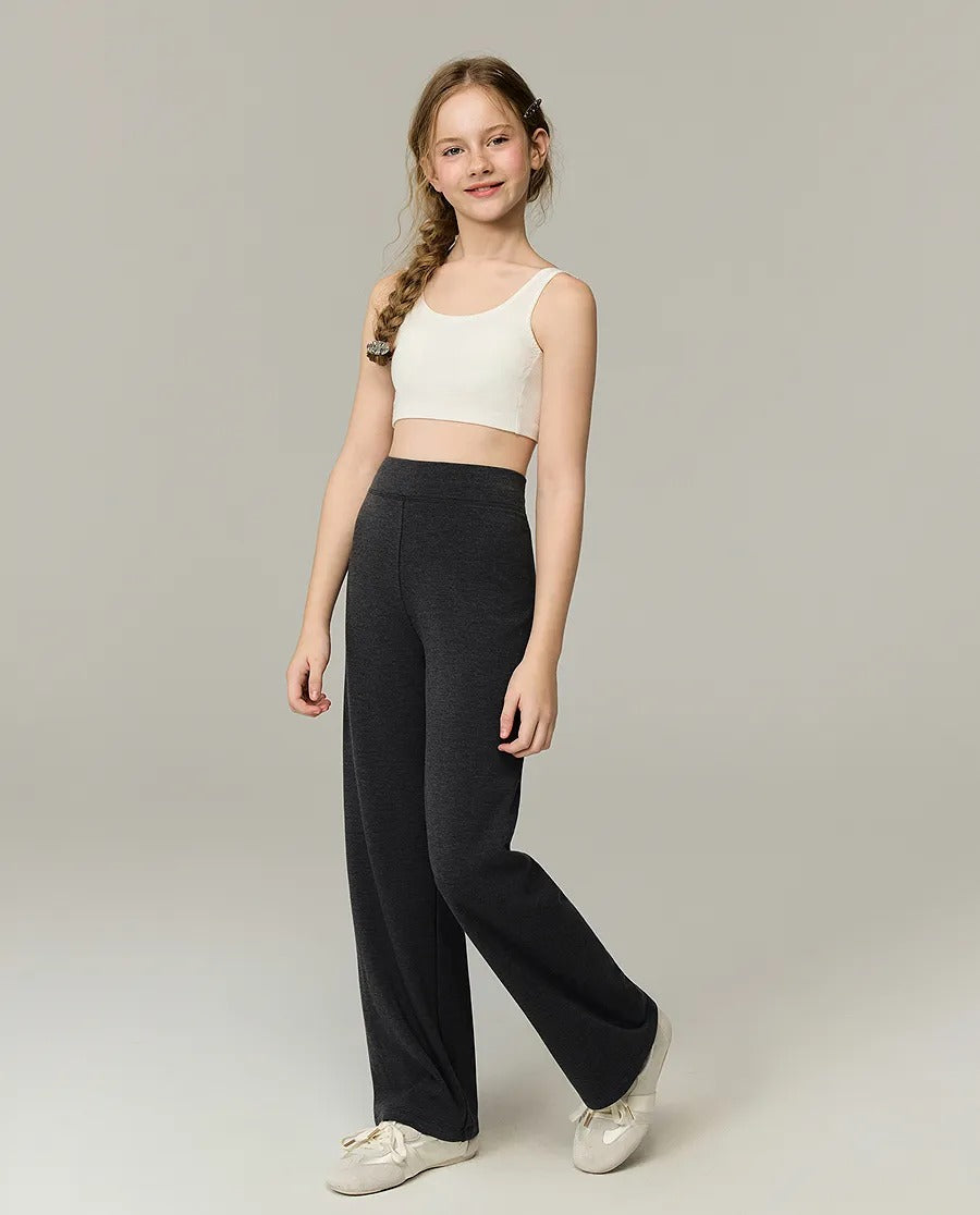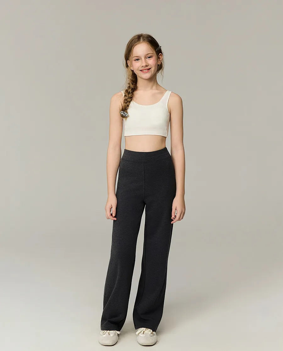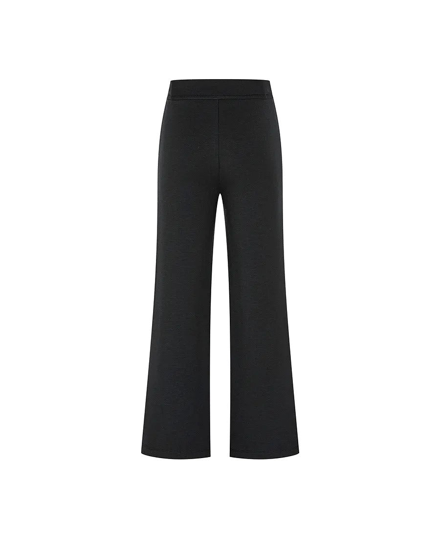 These Aimer Kids Straight Leg Pants combine acrylic and viscose fibers with a double-sided weave for durability and comfort. The brushed interior provides warmth and features far-infrared heating technology to maintain coziness. The smooth outer surface resists static electricity even after 10 washes, preventing winter discomfort. In classic black, these pants offer a slimming and height-enhancing appearance, making them ideal for stylish and practical children's wear.