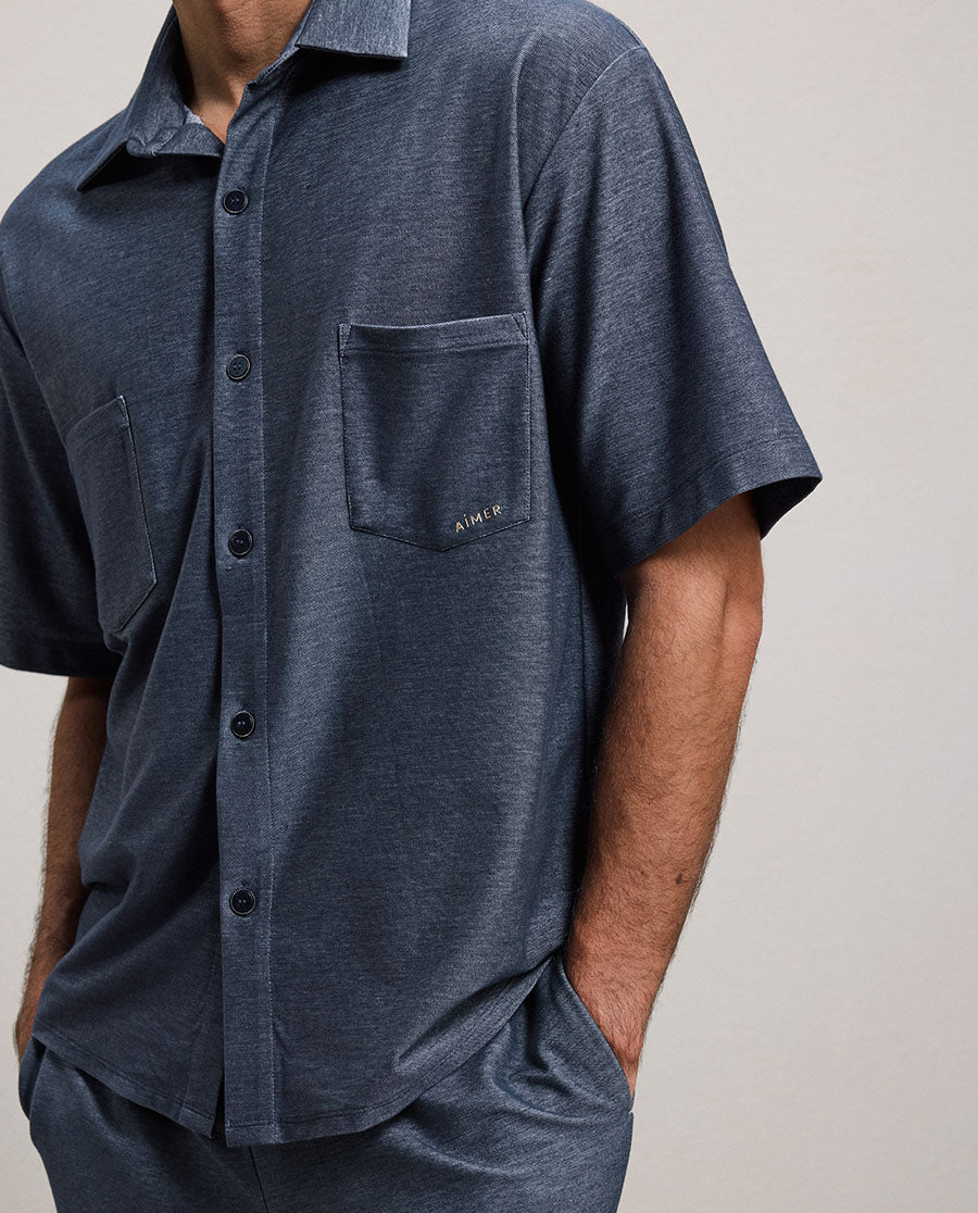 Aimer Men Algae Sleepwear Crewneck Short-Sleeve Top