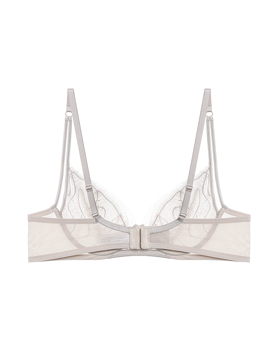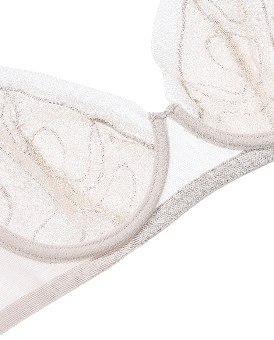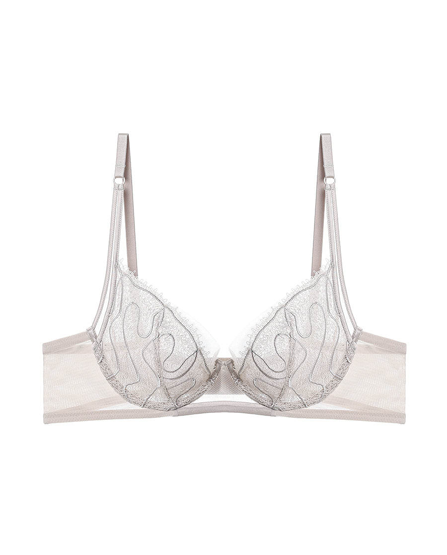 Embrace contemporary romance with this elegantly designed soft-support bra that seamlessly blends modern trends with timeless femininity. Delicate lace detailing and graceful bow accents create an enchanting aesthetic, while the sheer fabric adds an ethereal quality. The innovative removable crystal cup feature offers versatile styling options, allowing you to customize your look for any occasion. Crafted for comfort and sophistication, this 3/4 support bra delivers the perfect balance of allure and wearability for the discerning woman.