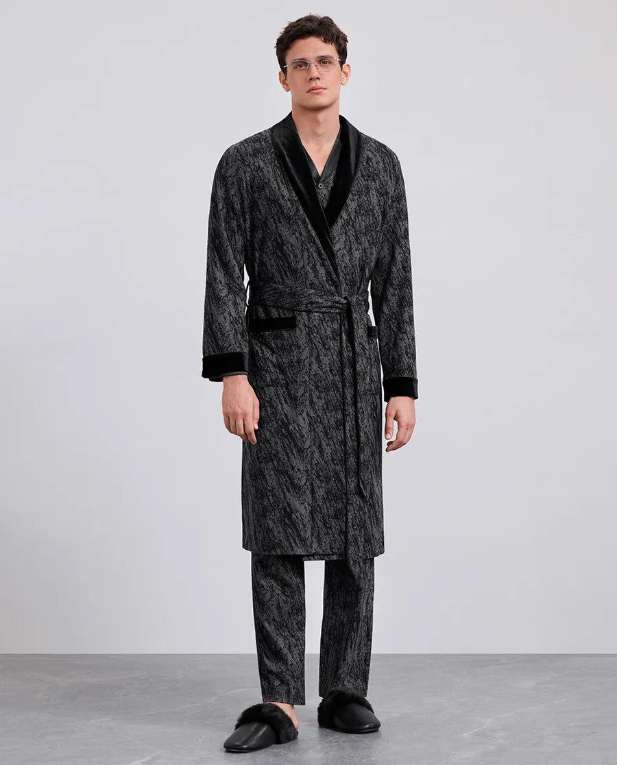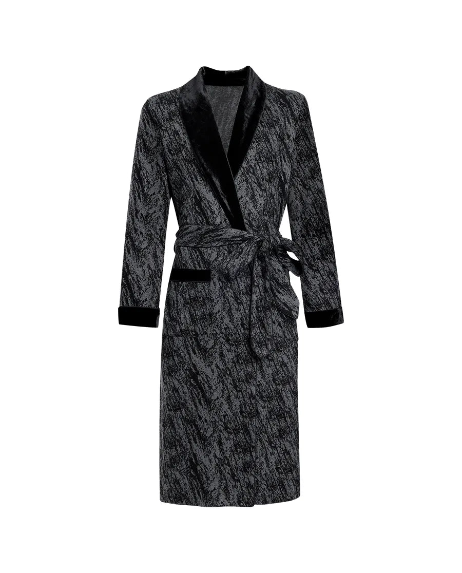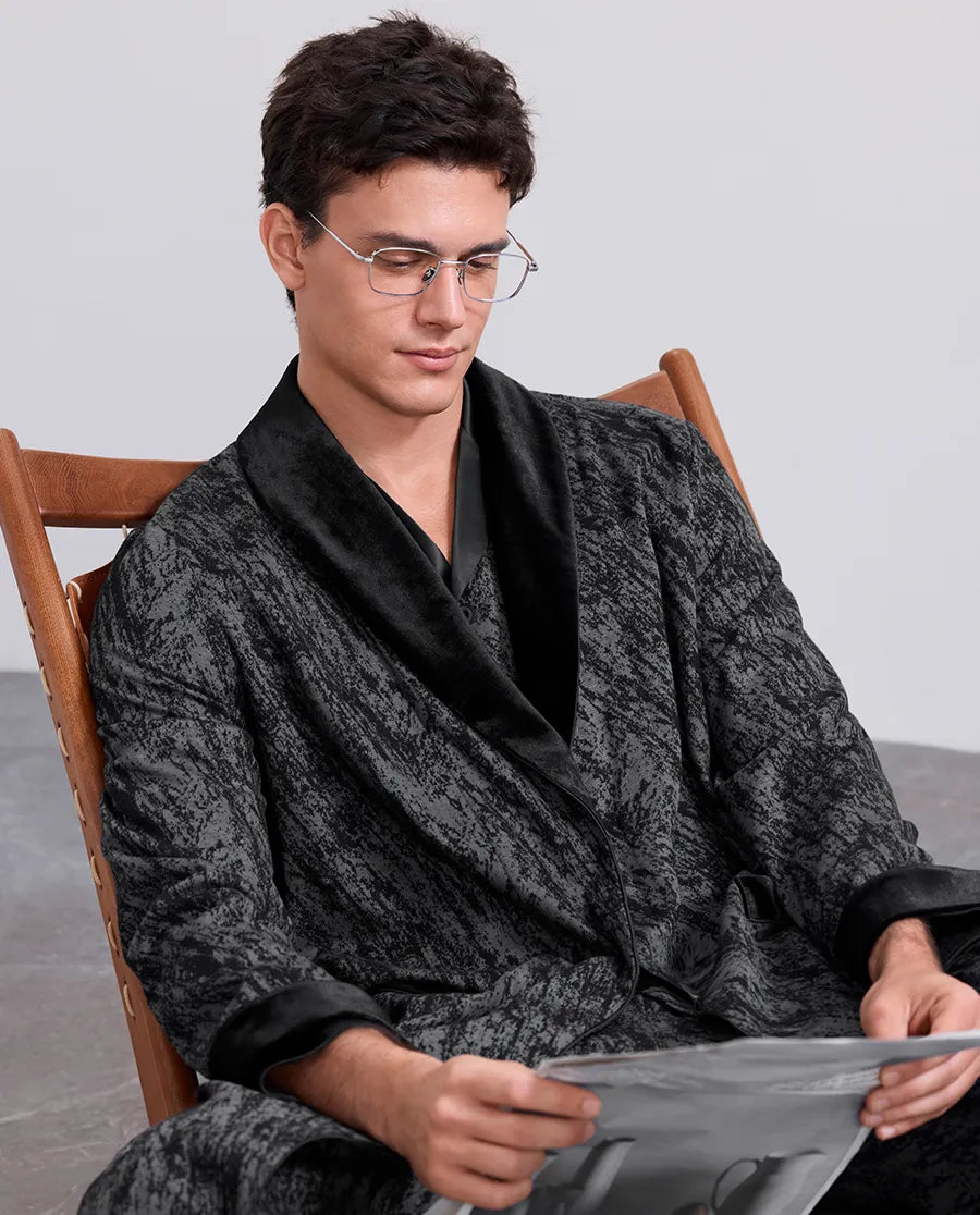 The Aimer Men Robe is made from high-quality materials, blending rough textures with modern artistic design. Crafted from a refined mix of Tencel and wool, it provides a soft feel and excellent comfort, redefining understated elegance. This robe strikes a perfect balance between rugged charm and refined restraint, making it ideal for the discerning gentleman at home.
