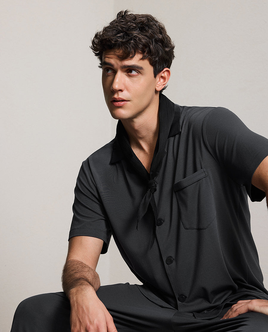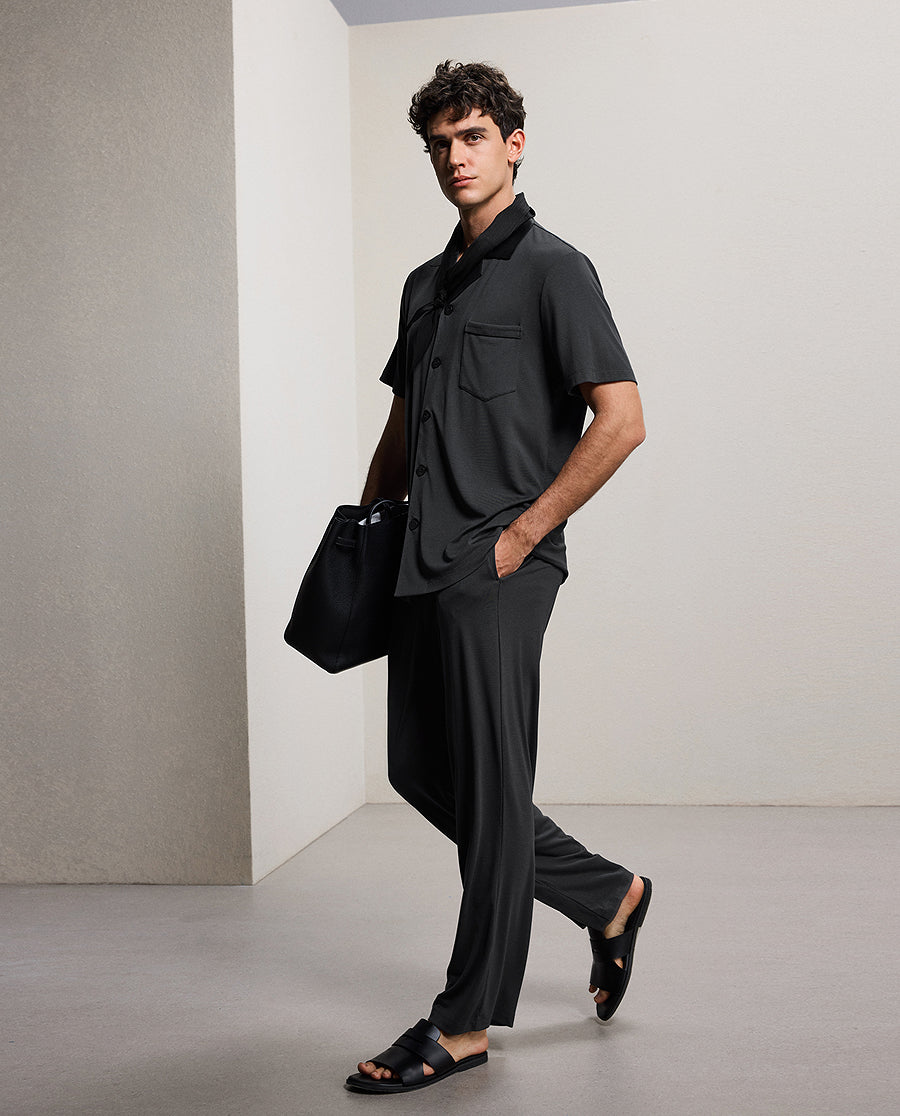 Aimer Men Cooling Pajama Set Experience refined comfort with this sophisticated pajama collection, crafted from advanced cooling fabric technology designed to regulate body temperature throughout the night. The classic notch collar silhouette delivers timeless elegance, while the breathable material ensures optimal airflow and moisture management. Perfect for warm climates or those seeking enhanced sleep quality, this versatile set combines contemporary design with functional comfort. Ideal for the discerning gentleman who values both style and restful nights.