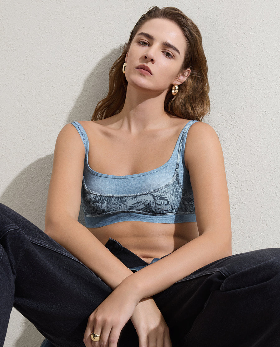 Dual-layer detachable design offers versatile styling options. The chic square neckline pairs effortlessly with any outfit, while soft padding provides comfortable support that works beautifully as a standalone piece. Bold color-blocking print delivers maximum visual impact. Engineered for both everyday wear and fashion-forward layering.