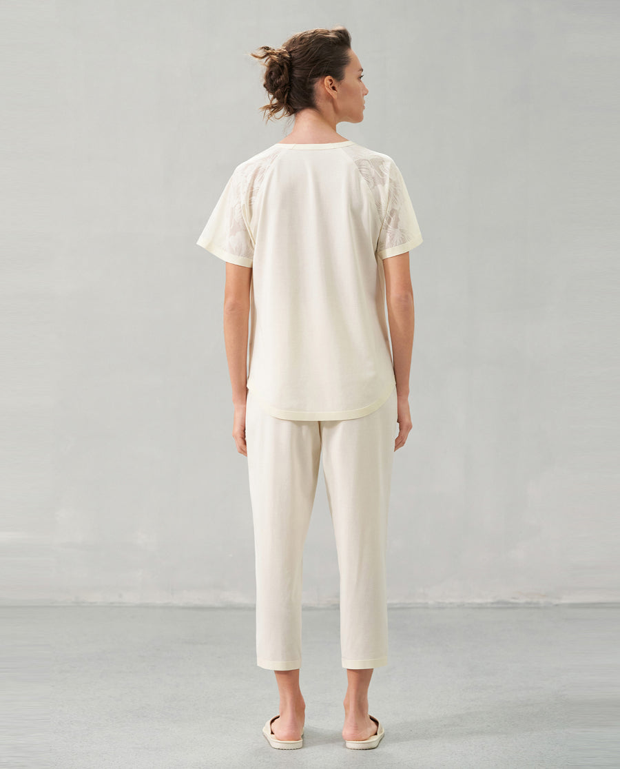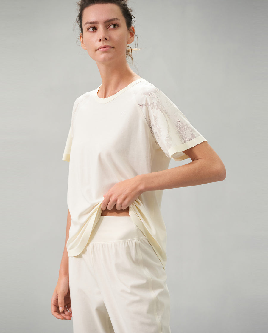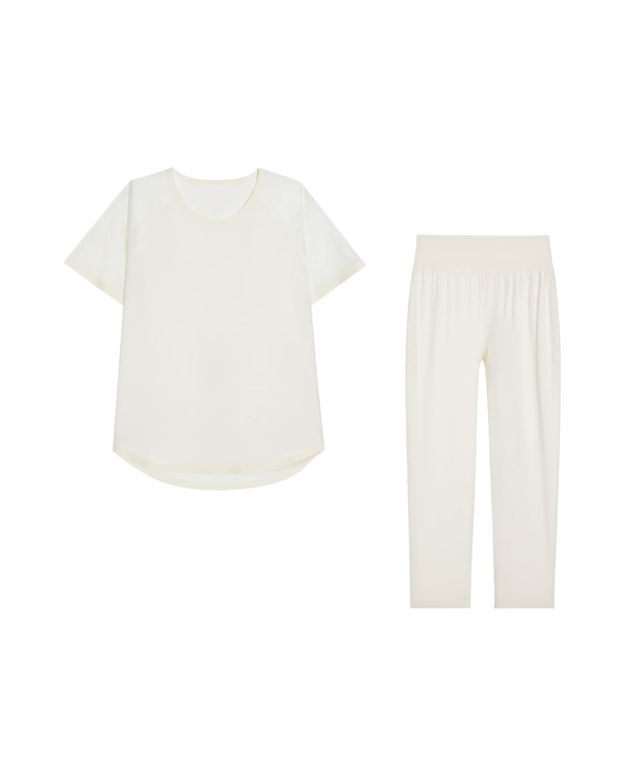 Experience the ultimate comfort and skincare with Aimer Pajamas Set. Made with Seaweed Fiber, it provides natural moisture and anti-sweat features. The soft and chemical-free material, treated with HICEL bio-hyaluronic acid, ensures gentle and irritation-free wear. With its functional design and Aimer HICEL silicone label, enjoy a fashionable and youthful look while enjoying the added benefits of mite-proof and seamless construction.