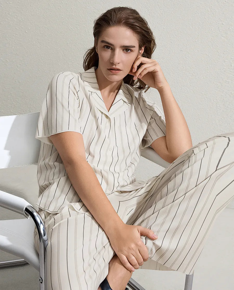 Aimer's proprietary AIGA™ algae fiber technology delivers an exceptionally soft, skin-friendly fabric that glides effortlessly against your body. Engineered for ultimate comfort, this innovative material provides a smooth, frictionless wearing experience without irritation. The breathable construction ensures all-night comfort, while the luxurious texture elevates your sleep routine. Crafted with meticulous attention to detail, these pajamas combine advanced textile innovation with timeless elegance, making them the perfect choice for those who refuse to compromise on quality or comfort.