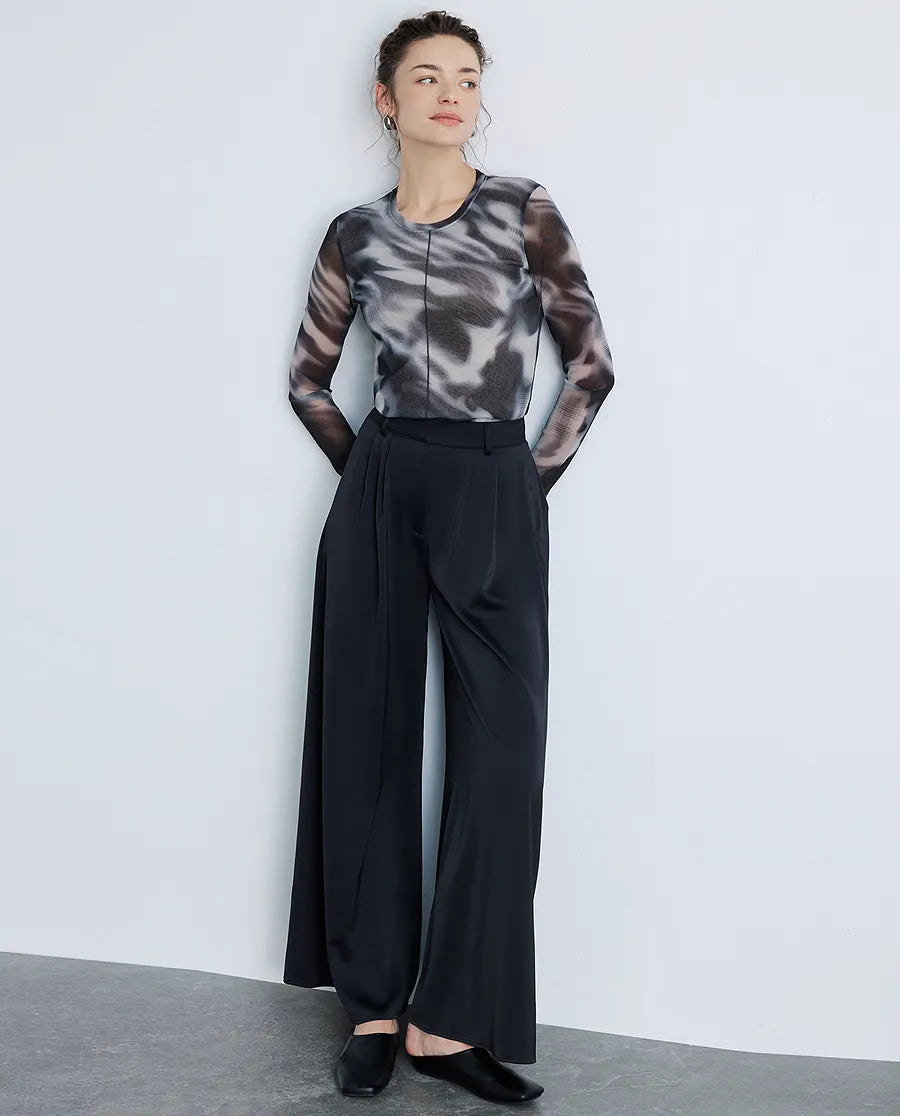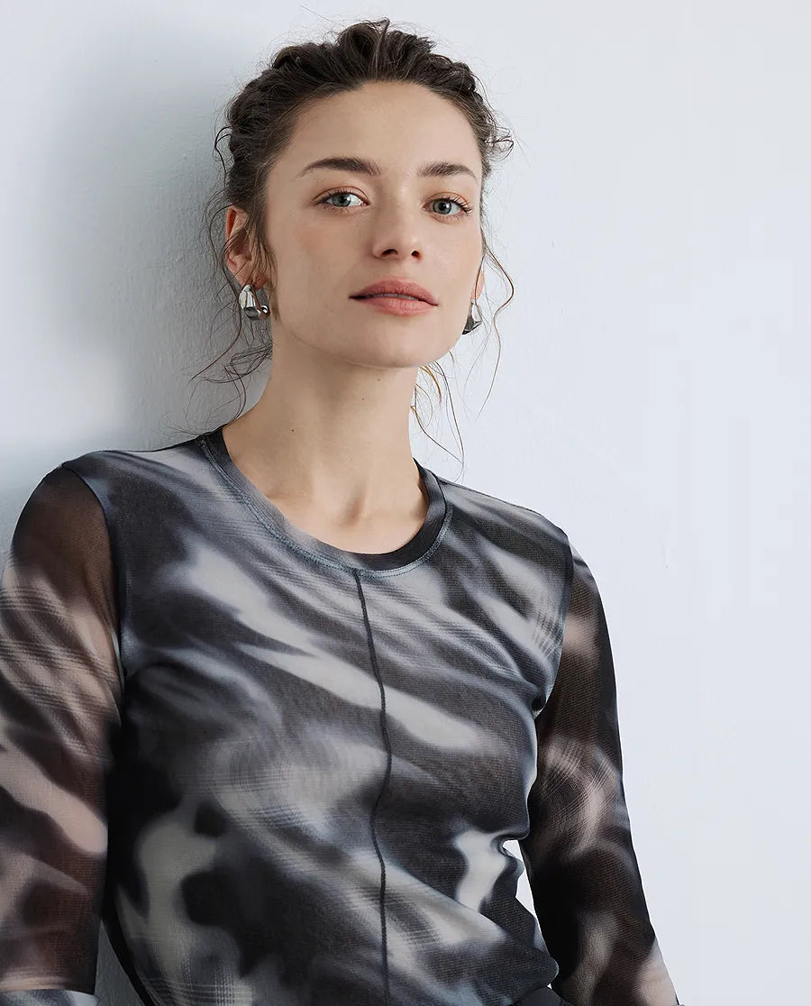 The Aimer Collar Long-sleeve Top features a fabric made from 100% 40D/12F nylon yarn mesh, delivering a soft and highly breathable feel. Its specialized mesh structure provides strong tension and excellent elasticity, ensuring a comfortable fit without any sense of restriction. This design combines advanced fabric technology with everyday wearability for superior comfort.
