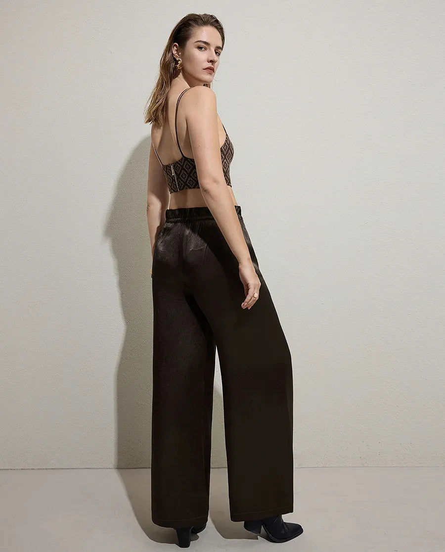 Crafted from breathable acetate fabric, these relaxed-fit trousers deliver effortless elegance with a subtle drape that flatters every silhouette. The durable construction ensures lasting wear through countless wears and washes, while the minimalist design transitions seamlessly from loungewear to casual outings. Low-maintenance and versatile, they pair beautifully with everything in your wardrobe. Experience the perfect balance of comfort and refined simplicity.
