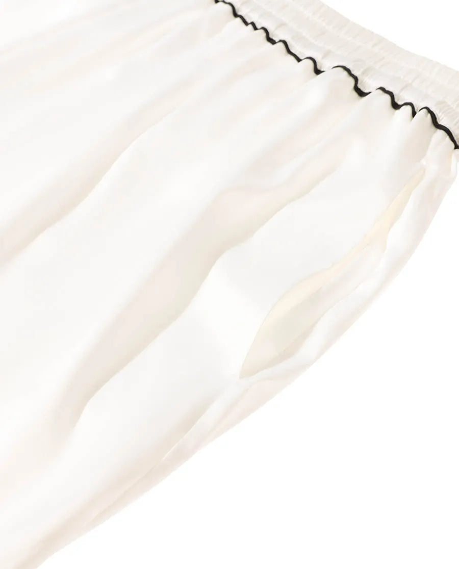 The relaxed, straight-leg fit drapes beautifully on the body, providing freedom of movement and all-day comfort. Finished with refined details and a clean silhouette, they’re perfect for lounging at home, relaxing in style, or even stepping out for a casual errand without changing.