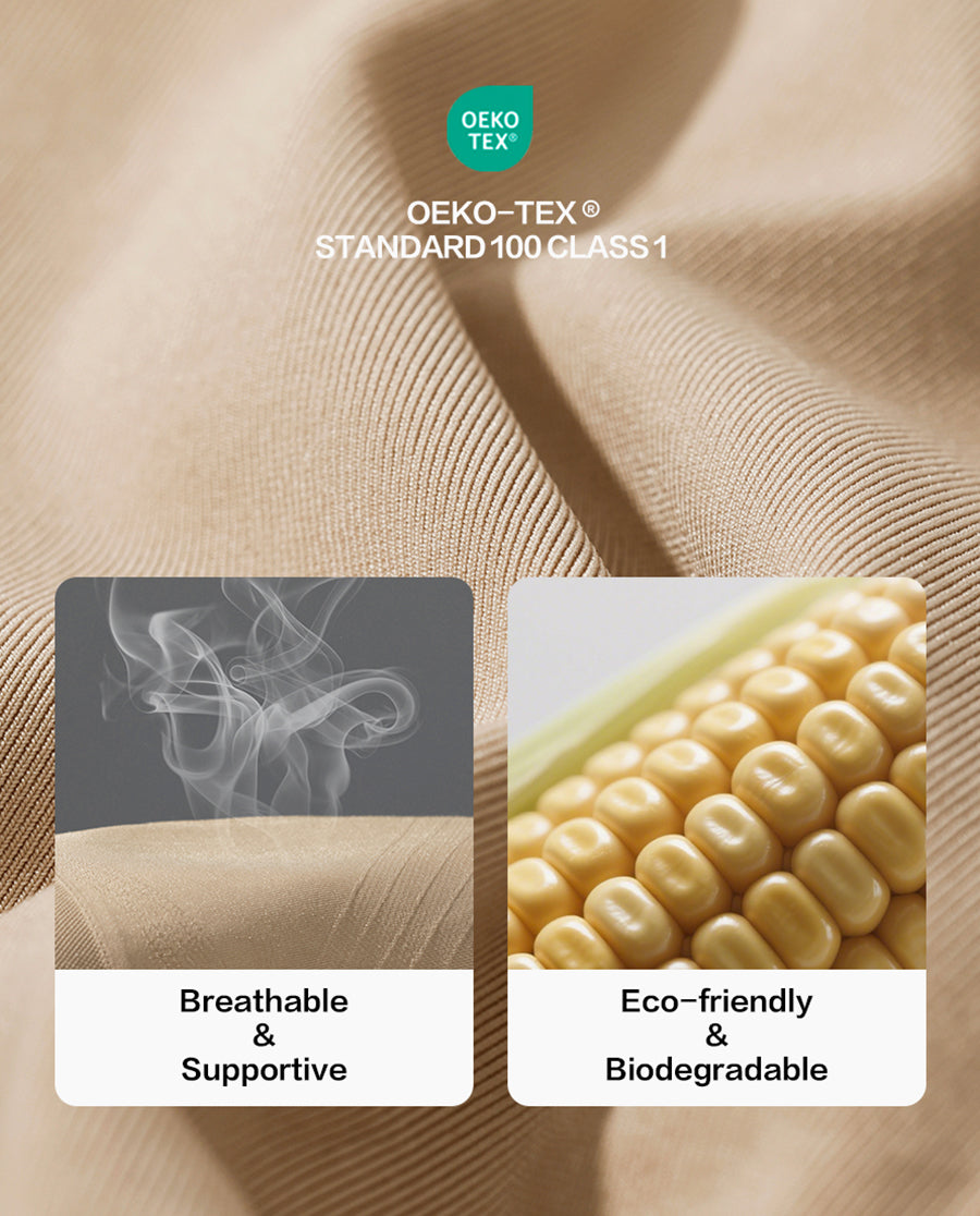 •Natural Fiber, cornstarch-based components. Our production also uses innovative technologies for dyeing fabrics to save water.